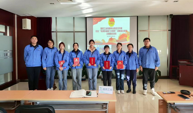 12月26日,在馬克思主義中國化的偉大開拓者、中國社會主義現代化建設事業的偉大奠基者毛澤東同志誕辰130周年之際,為銘記偉人功績,引導廣大團員青年弘揚社會主義核心價值觀,聽黨的話,跟黨走,立足崗位,建功新時代,把毛澤東同志開創的事業繼續推向前進,國藥工業黨委、工會聯合團總支共同組織開展了“紀念毛澤東同志誕辰130周年”詩朗誦比賽暨主題團日活動。國藥工業黨政班子成員、部分中層管理人員和團員青年共計25人參加了活動。