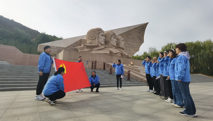 在英雄紀念墻前,國藥工業第二黨支部組織全體黨員面向黨旗,重溫入黨誓詞,銘刻入黨初心。