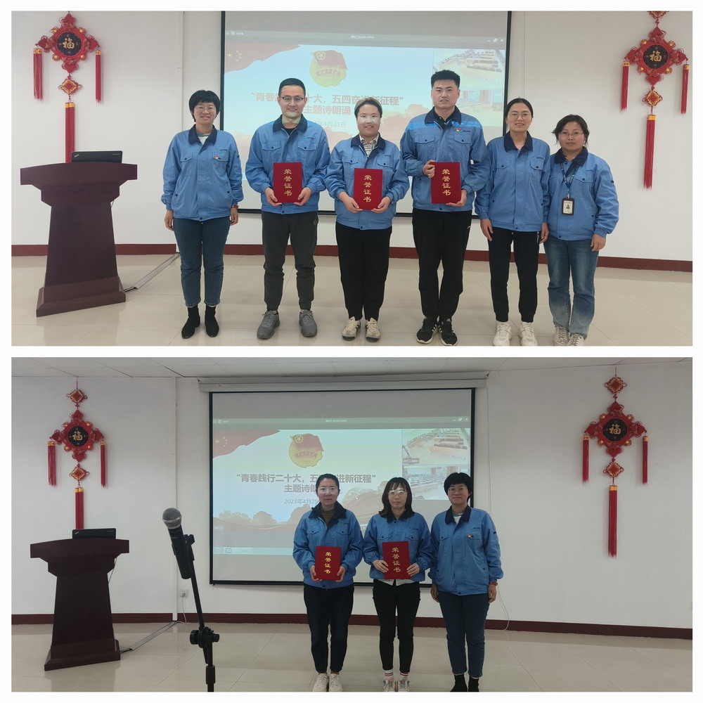 順義團支部委員劉猛為全體人員詳細介紹了“五四”運動的歷史背景、起因、經過及其深遠影響與歷史意義。隨后,“青春踐行二十大,五四奮進新征程”主題詩朗誦比賽正式拉開了序幕。來自順義、廊坊兩地的12組選手參加了比賽。選手們的朗誦,主題鮮明、情感飽滿、形式新穎,充分彰顯了新時代國藥青年人奮發進取的精神風貌。經過評委綜合評分,最終作品《青春中國》榮獲一等獎;作品《中國力量》和《百年奮斗,薪火相傳》榮獲二等獎;作品《我們的青春》《不負韶華,堅定不移跟黨走》《黨的二十大之歌》榮獲三等獎。