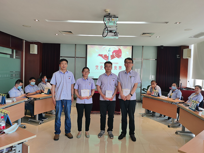 本次黨史知識競賽設置了必答題、搶答題、挑戰題三個環節,題目內容涵蓋黨的各個歷史時期等相關知識。比賽中,分別來自國工有限五個黨支部和團總支的6支參賽代表隊的選手們在必答題環節準備充分,答題精準;在搶答題環節,大家踴躍搶答,現場氣氛熱烈。經過半天激烈的角逐,最終國工有限第四黨支部代表隊取得了比賽第一名,第三黨支部代表隊和第五黨支部代表隊分別取得了比賽的第二名和第三名。孫福剛同志現場為獲獎選手們頒發了黨史學習書籍以資鼓勵。
