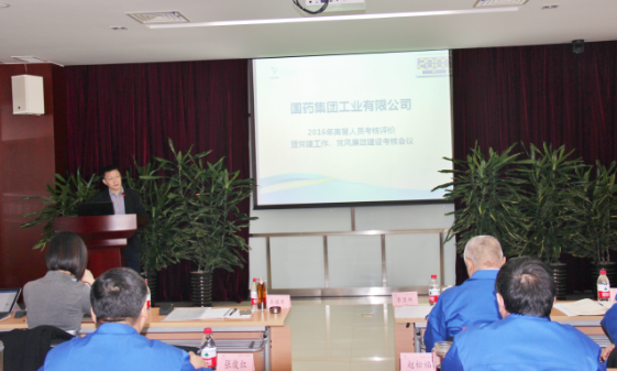 3月7日,公司召開了2016年度高管人員考核評價會暨黨建工作和黨風廉政考核會,會議由上海現代制藥股份有限公司人力資源部經理崔菲主持。國藥現代副總裁、黨委委員王述東、黨群工作部主任李軼和紀檢監察室主任盛青以及公司中層以上管理人員、部分職工代表參加了本次會議。